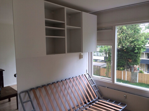 De studio is voorzien van alles wat je nodig hebt om comfortabel te kunnen wonen! Zo is het interieur netjes afgewerkt en voorzien van laminaat, kastruimte en lamellen. Daarnaast heb je je eigen keuken, toilet, douche en wastafel. De wasmachine en droger worden gezamenlijk gebruikt en staan beneden bij de ingang.